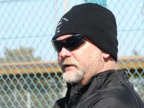 Blue Jays pitching coach Bruce Walton, braving the Florida tundra